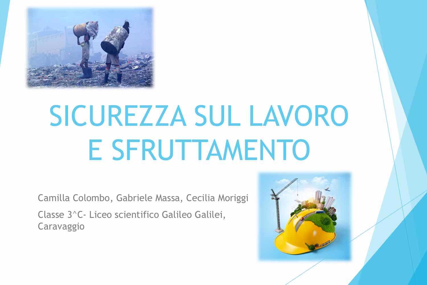La presentazione su sicurezza sul lavoro e sfruttamento preparata da Camilla Colombo, Gabriele Massa e Cecilia Moriggi che è stata premiata dal consolato di Bergamo dei Maestri del lavoro con una borsa di studio, che è stata consegnata ai tre studenti sabato 9 novembre 2019.