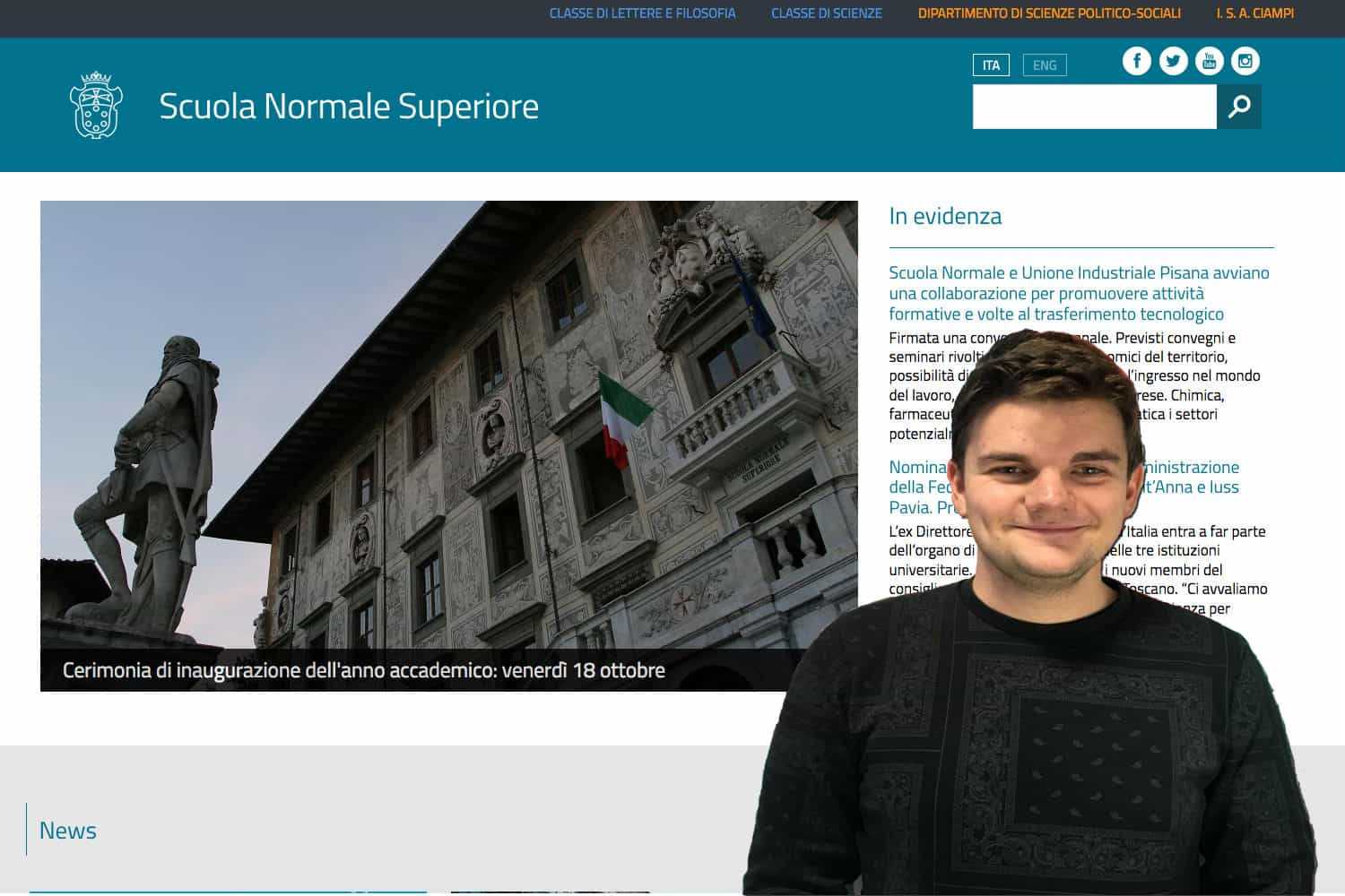 Matteo Pioldi, ex studente del liceo Galilei che ha conseguito la maturità scientifica con 100 e lode nello scorso mese di luglio, si è iscritto alla facoltà di fisica della "Normale" di Pisa, superando brillantemente le prove di selezione. Il concorso ordinario per la classe di scienze dell'anno accademico 2019/2020 prevedeva 32 posti per gli studenti del primo anno e Matteo figura al dodicesimo posto nella graduatoria finale.