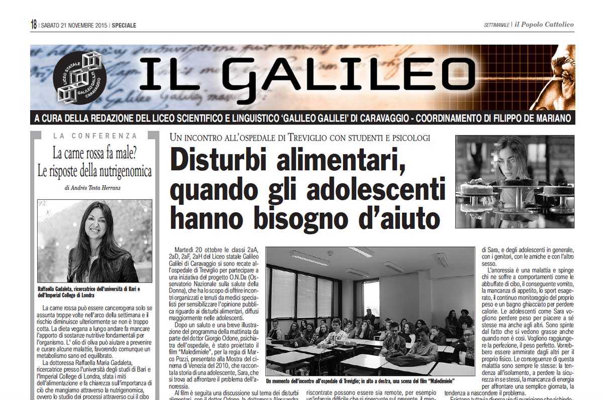 Le risposte della nutrigenomica agli interrogativi sull'alimentazione, i disturbi alimentari che colpiscono gli adolescenti, la mostra del Goethe Institut in occasione del venticinquesimo anniversario della riunificazione delle due Germanie e la Straliceo nel Galileo di novembre, il supllemento del "Popo Cattolico" scritto dagli studenti del Galilei.