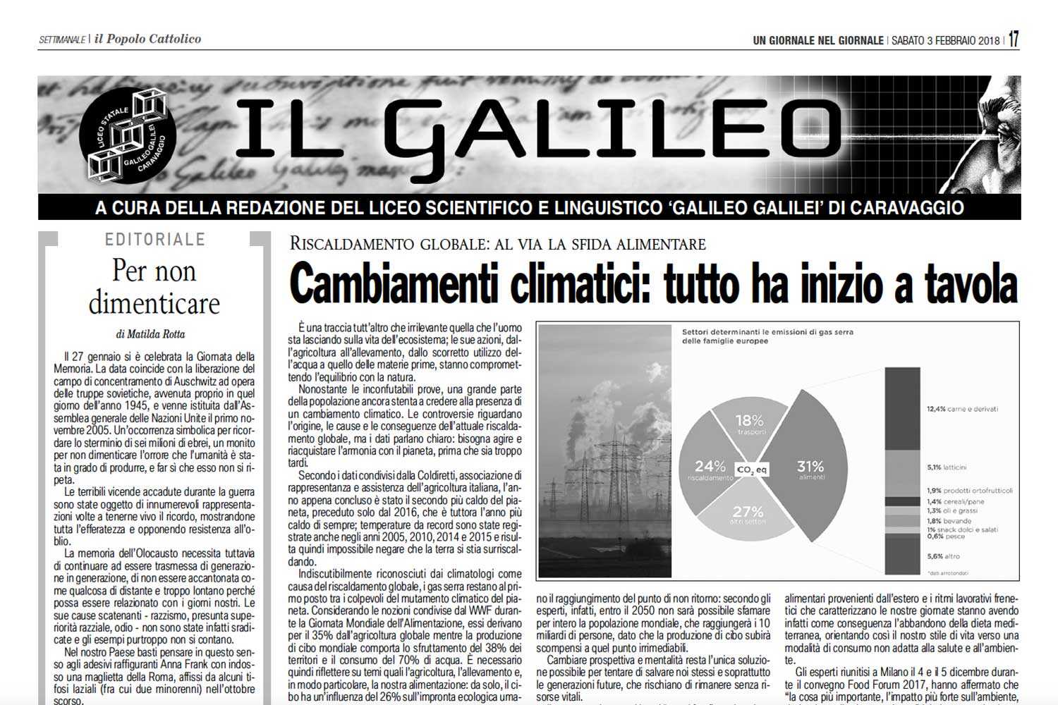 Il valore del ricordo nella giornata della memoria, l'importanza delle abitudini alimentari nei cambiamenti climatici, le olimpiadi di matematica, fisica e informatica, l'inaugurazione dell'aula 3.0. Sono questi gli argomenti di cui si parla nel numero di gennaio 2018 del "Galileo", il supplemento del "Popolo Cattolico" scritto dagli studenti del liceo Galilei.