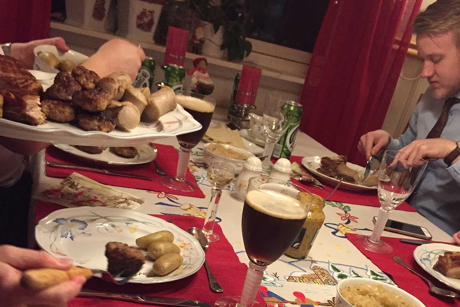 La grande abbuffata in stile norvegese varia dalla costa in cui ti trovi, e fortunatamente io sono dalla parte buona. Sulla costa occidentale infatti la cena di Natale consiste principalmente in un piatto chiamato “pinneskjot”, ovvero costolette d’agnello salate ed essiccate. Da brava figlia all’estero che si impegna a provare cose per la prima volta, andando oltre le apparenze, non ho detto di no quando John mi ha proposto un assaggio «per sapere cosa ne penso». Decisamente qualcosa che non fa per tutti.