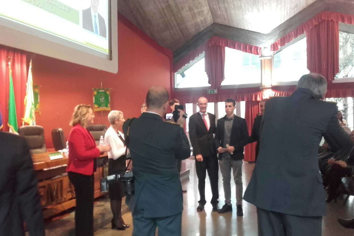 Le immagini della cerimonia di premiazione della nona edizione del concorso "ScuolAccademia", svoltasi all'Accademia della Guardia di finanza di Bergamo mercoledì 1° febbraio 2017, durante la quale hanno ricevuto un riconoscimento stati premiati gli studenti di 5aH Simone Finatti, secondo classificato, e Luca Lupo, insignito del "premio cadetto".
