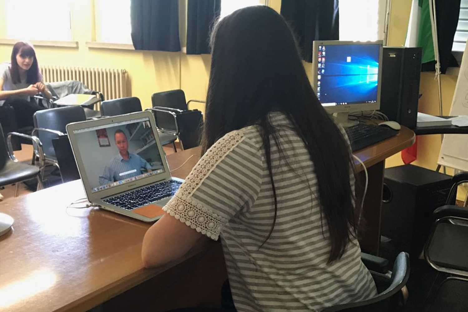 I 15 studenti di 3aF e 3aG che dal 1° al 21 luglio parteciperanno al progetto "Galilei on the Move", finanziato dall'Unione europea con i fondi del Pon 2014-2020, si stanno preparando alle tre settimane in Inghilterra. Oggi, lunedì 4 giugno, l'agenzia formativa di Chester, dopo avere esaminato i curriculum e le lettere di presentazione, ha effettuato dei brvei colloqui di lavoro con i ragazzi attraverso Skype. Il collegamento è servito per verificare le competenze linguistiche dei ragazzi e selezionare la struttura ospitante più adatta a ciascuno di loro.