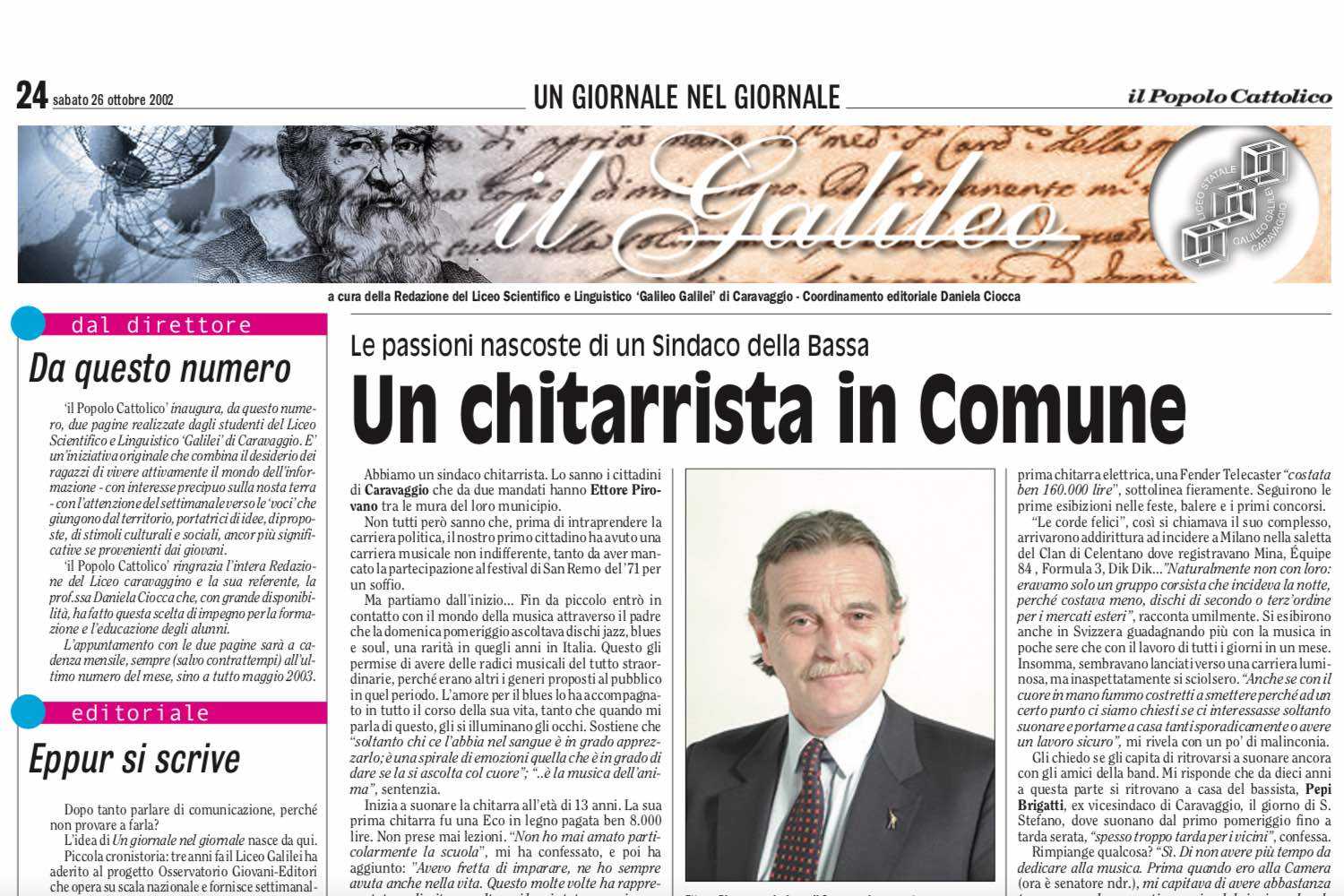 Le passioni nascoste del sindaco di Caravaggio, Ettore Pirovano, un'esposizione di auto e moto d'epoca a Bariano, i risultati di un'indagine sull'uso delle sigarette tra le donne, un'intervista a Michela Maccali, protagonista della fiction di Francesca Archibugi sui "Promessi sposi", una conversazione con "nonna Gina", enciclopedia viviente di proverbi a Brignano, e altro ancora nel primo numero del "Galileo", l'inserto mensile del "Popolo Cattolico" scritto dagli studenti del liceo Galilei.