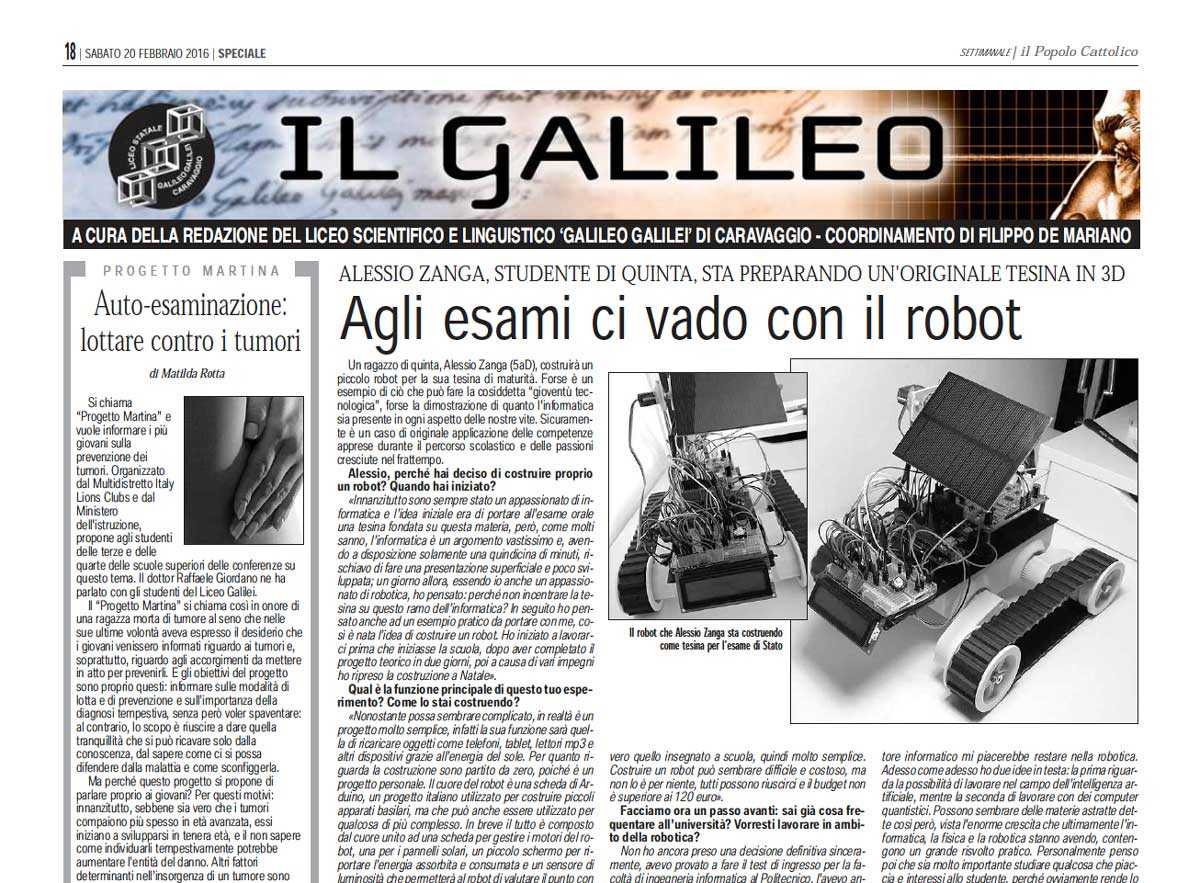L'originale tesina in 3D di Alessio Zanga, studente della 5aD, la visita al Cern di Ginevra delle classi quinte, gli incontri sulla prevenzione dei tumori del "Progetti Martina" e altro ancora nel numero di febbraio del supplemento del "Popolo Cattolico" scritto dagli studenti del Liceo Galilei.