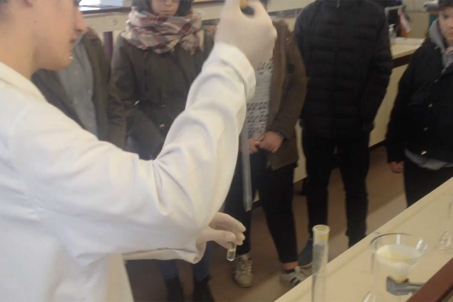 Condividi su Facebook Condividi su Messenger Condividi su Twitter Condividi su Whatsapp Segnala a un amico Gli studenti del Galilei presenti nell'aula speciale di scienze con la professoressa Sant'Ambrogio mostrano ai ragazzi della scuola secondaria di primo grado in visita per l'open day del 17 dicembre 2016 alcuni esperimenti. Parole chiave open day 2016