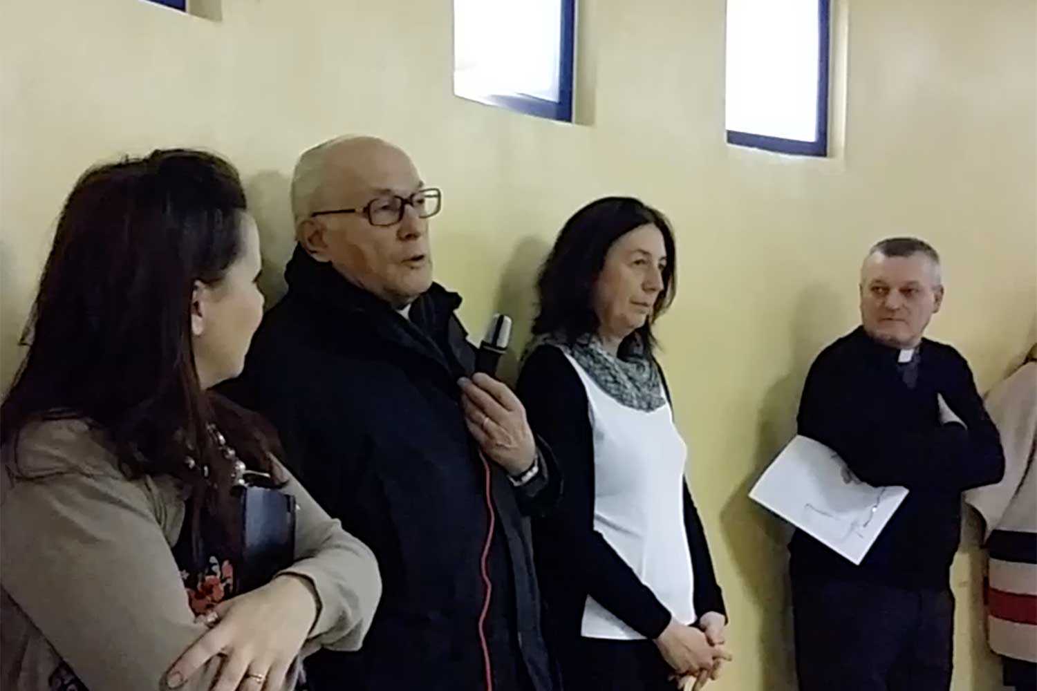 Nel video, le parole del signor Castelli, la presentazione dell'opera da parte della professoressa Stefania Bressani e gli interventi della professoressa Enrica Rossini, coordinatrice del dipartimento di disegno e storia dell'arte, e della presidente del consiglio d'istituto Elena Stucchi.