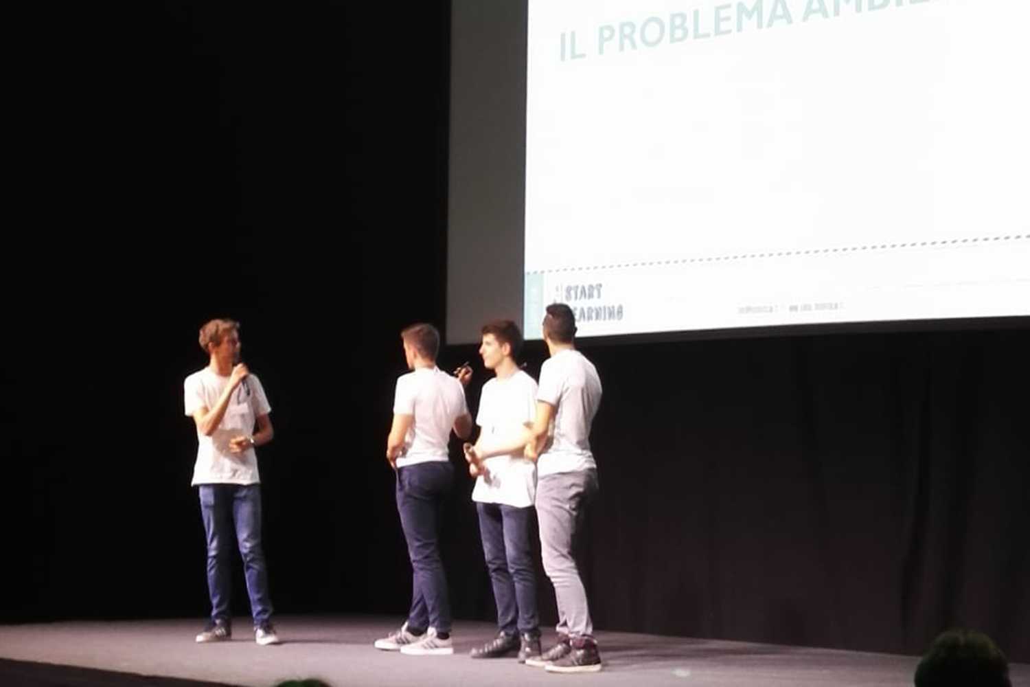 Wax&Cloths è stata inserita dalla giuria tra le dieci imprese che hanno partecipato alla fase finale, durante la quale ogni gruppo ha presentato al pubblico il proprio prodotto (nella foto in alto il momento dell'intervento dei ragazzi della 4aE).