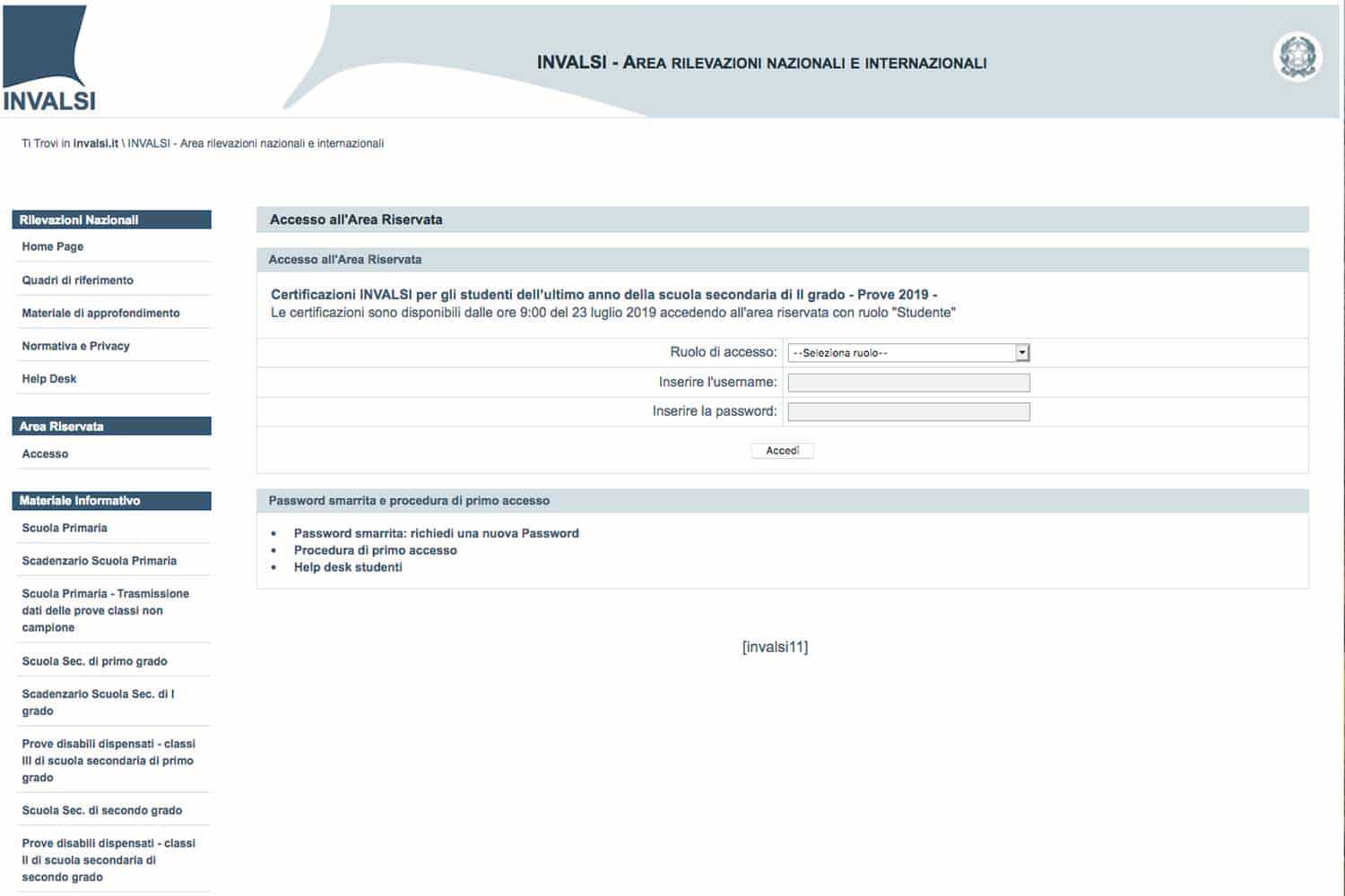 Gli studenti delle classi quinte che hanno sostenuto le prove nazionali Invalsi nel mese di marzo possono consultare i loro risultati attraverso la pagina internet https://invalsi-areaprove.cineca.it/index.php?get=accesso che consente l'accesso all'area riservata.